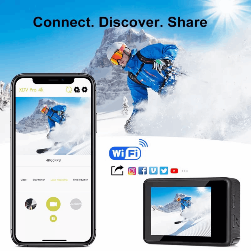AUSHA 4K 60fps كاميرا رياضية مزدوجة تعمل باللمس كاميرا مقاومة للماء تحت الماء
