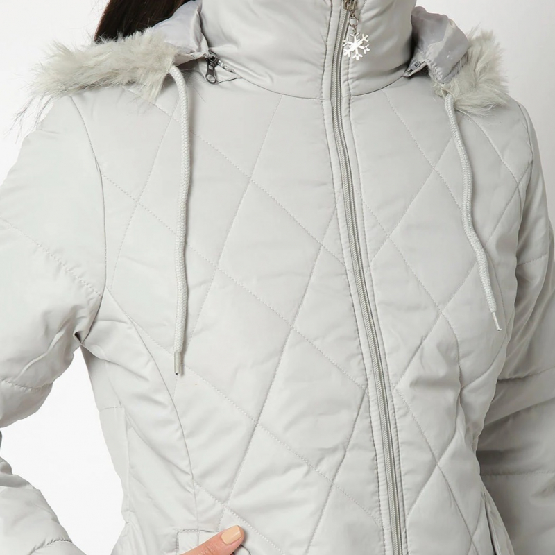 سترة مع تقليم الفرو الصناعي ، لديها طوق وهمي مع غطاء محرك السيارة ، 2 جيوب ، لديه زر مفاجئ للإغلاق ، بدون أكمام ، حافة مستقيمة ، بطانة من البوليستر