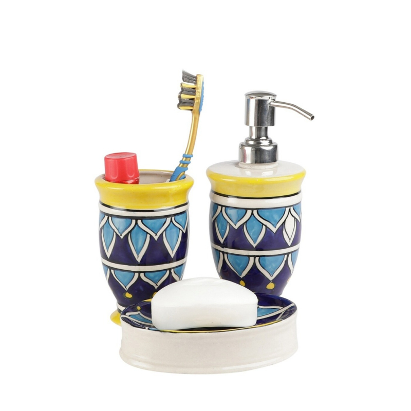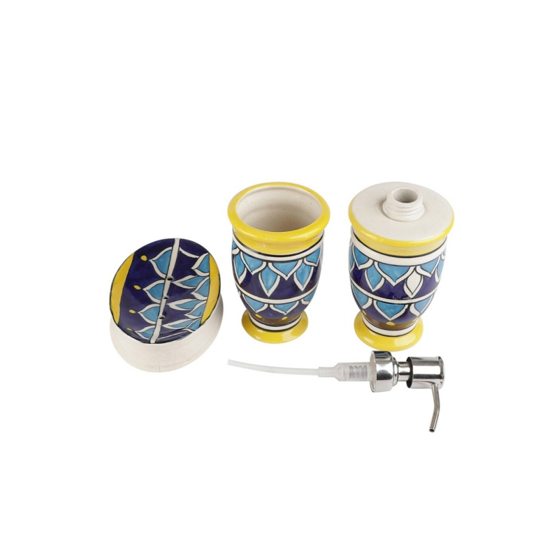 موزع VAREESHA مرسوم باليد مع حامل فرشاة وصحن صابون